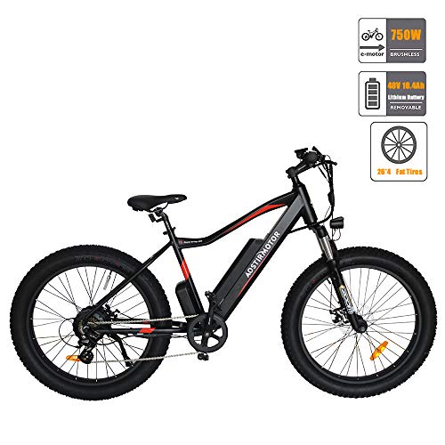 Offer aostirmotor Electric Mountain Bike, 26" 4.0 inch Fat Tire Ebike, Ebike with Rack, 750W Motor, 48V 10